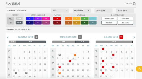In het onderdeel Planning vindt u een overzicht van de statussen van alle onderhoudsactiviteiten binnen het productiebedrijf. U kunt bijvoorbeeld zien welke instructies ingepland moeten worden en welke in behandeling zijn. Daarnaast genereert u hier ook de checklists die gebruikt kunnen worden bij het uitvoeren van verzorgend onderhoud. De checklist bevat een overzicht van alle acties die per component van een object uitgevoerd moeten worden.
